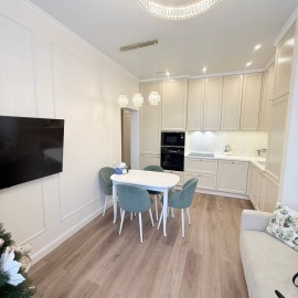 Квартира с авторским дизайнерским ремонтом в доме премиального сегмента "HIDE".Описание квартиры:- Квартира с двумя спальнями, двумя санузлами (ванной и душевой кабиной) на 28 этаже. Просторная кухня-столовая. Мастер-спальня со своим санузлом. Высота потолков 3.2 м.,...