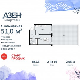 Продается 1-комн. квартира с отделкой в ЖК "Дзен-кварталы" на 2 этаже. Общая площадь: 51 кв.м., жилая: 12.1 кв.м., площадь просторной кухни-столовой: 14.5 кв.м. Все окна выходят на одну сторону. В квартире один балкон, один совмещенный санузел. Терраса представляет собой роскошную зону...