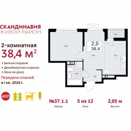Просторная двухкомнатная квартира с европланировкой и предчистовой отделкой в ЖК "Скандинавия" на 5 этаже. Общая площадь: 38.4 кв.м., жилая: 21.2 кв.м., общая площадь гостиной-столовой с кухонной зоной: 18.9 кв.м. Европейская планировка, за счет большой площади кухни-гостиной...