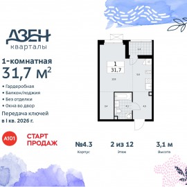 Продается однокомнатная квартира бизнес-класса-студия в ЖК "Дзен-кварталы" на 2 этаже. Квартира без отделки, полностью готова к ремонту. Общая площадь: 31.7 кв.м., площадь гостиной 18.4 кв.м., из которых 5.6 кв.м. выделено под кухонную зону. Все окна выходят на одну сторону. В...