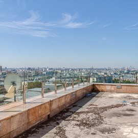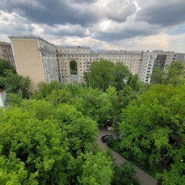 Квартира с панорамными видами на центр Москвы в кирпичном доме с высокими потолками. В квартире свободная планировка, внутри нет несущих стен, сейчас в планировке шесть комнат, кухня, раздельный санузел, просторный холл, окна на три стороны, перекрытия – смешанные...