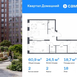 Строим кварталы для жизни с заботой о будущем. Предлагается 2-комнатная квартира комфорт-класса 60, 85 кв.м в корпусе 2 на 18 этаже, в ЖК «Квартал Домашний» Квартира с чистовой отделкой. Доступность дополнительных опций уточняйте у застройщика. Приобрести квартиру возможно по...