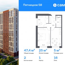Строим кварталы для жизни с заботой о будущем. Предлагаются 2-комнатные апартаменты комфорт-класса 47, 43 кв.м в корпусе 1 на 16 этаже, в ЖК «Пятницкое 58» Апартаменты с чистовой отделкой. Доступность дополнительных опций уточняйте у застройщика. Прописка не предусмотрена в...