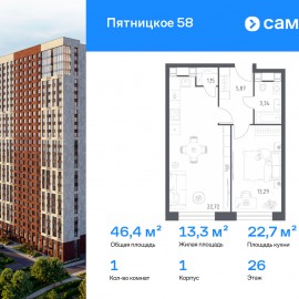 Строим кварталы для жизни с заботой о будущем. Предлагаются апартаменты студия комфорт-класса 22, 38 кв.м в корпусе 1 на 13 этаже, в ЖК «Пятницкое 58» Апартаменты с чистовой отделкой. Доступность дополнительных опций уточняйте у застройщика. Прописка не предусмотрена в рамках...