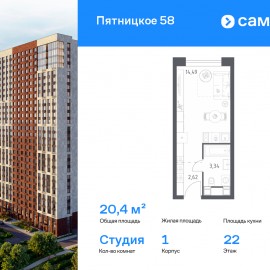Строим кварталы для жизни с заботой о будущем. Предлагаются апартаменты студия комфорт-класса 20, 4 кв.м в корпусе 1 на 22 этаже, в ЖК «Пятницкое 58» Апартаменты с чистовой отделкой. Доступность дополнительных опций уточняйте у застройщика. Прописка не предусмотрена в рамках...