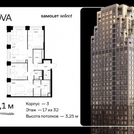 Строим кварталы для жизни с заботой о будущем. Предлагается 3-комнатная квартира премиум-класса 91, 12 кв.м в корпусе 3 на 17 этаже, в ЖК «NOVA» Квартира без отделки. Доступность опции «отделка» и возможность комплектации мебелью и декором уточняйте у застройщика. Приобрести...