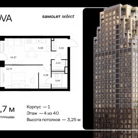 Строим кварталы для жизни с заботой о будущем. Предлагается 1-комнатная квартира премиум-класса 48, 67 кв.м в корпусе 1 на 4 этаже, в ЖК «NOVA» Квартира без отделки. Доступность опции «отделка» и возможность комплектации мебелью и декором уточняйте у застройщика. Приобрести...