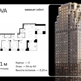Строим кварталы для жизни с заботой о будущем. Предлагается 3-комнатная квартира премиум-класса 111, 03 кв.м в корпусе 3 на 34 этаже, в ЖК «NOVA» Квартира без отделки. Доступность опции «отделка» и возможность комплектации мебелью и декором уточняйте у застройщика. Приобрести...
