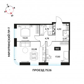 Id 387463. Продаётся 2‑комнатная квартира на проспекте Вернадского в доме индивидуального проекта. Удачное зонирование пространства: изолированные комнаты 17, 5 кв. м + 16, 4 кв. м, кухня 9, 2 кв. м, лоджия, просторный холл, гардеробная, санузел раздельный. Хорошее состояние. Окна...