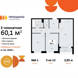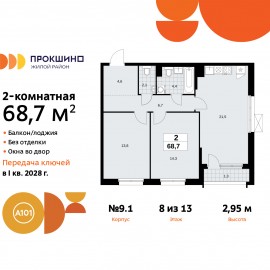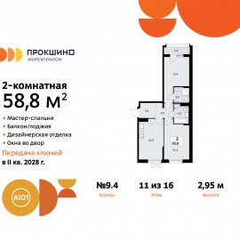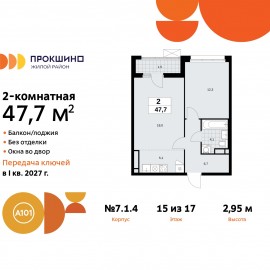 Вашему вниманию предлагается 2-к. квартира в жилом квартале «Прокшино». Сдача дома 1 квартал 2025. От действующей станция ""Прокшино"" Сокольнической линии метро его отделяет всего 500 м. На территории комплекса - собственный образовательный кластер с детским садом на 350 мест...