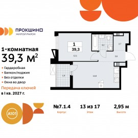 Продается однокомнатная квартира от застройщика в ЖК "Прокшино" на 13 этаже. Квартира без отделки, после оформления собственности можно делать ремонт. Общая площадь: 39.3 кв.м., жилая: 12.1 кв.м., площадь просторной кухни-столовой: 14.8 кв.м. Все окна выходят на одну сторону. В...