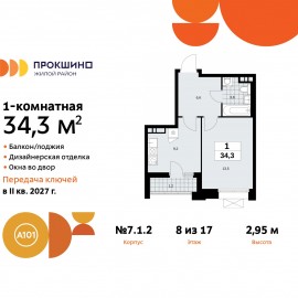 Продается 1-комн. квартира с отделкой в ЖК "Прокшино" на 8 этаже. Общая площадь: 34.3 кв.м., жилая: 13.5 кв.м., площадь просторной кухни-столовой: 9.1 кв.м. Все окна выходят на одну сторону. В квартире одна лоджия, один совмещенный санузел. Высота потолков 2.95 м. Эта квартира будет сдана с...
