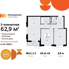 Просторная трехкомнатная квартира с предчистовой отделкой в ЖК "Прокшино" на 18 этаже. Общая площадь: 62.8 кв.м. Высота потолков 2.8 м. Эта квартира будет сдана с предчистовой отделкой white box – это квартира с ровными белыми стенами. Такая отделка позволяет сразу приступить к...