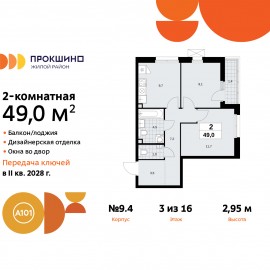 2-комн. квартира с отделкой в ЖК "Прокшино" на 16 этаже. Общая площадь: 51.2 кв.м., жилая: 27 кв.м., площадь просторной кухни-столовой: 11.8 кв.м. Квартира угловая, окна oбecпeчивaют paвнoмepнoe ocвeщeниe в тeчeниe дня. В квартире одна лоджия, один совмещенный санузел. Высота потолков 2.95 м. Эта...