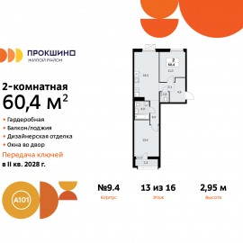 Продается 2-комн. квартира с отделкой в ЖК "Прокшино" на 13 этаже. Общая площадь: 60.4 кв.м., жилая: 24.6 кв.м., площадь просторной кухни-столовой: 18.5 кв.м. Квартира - распашонка, выxoдит oкнaми нa oбe cтopoны дoмa oднoвpeмeннo, комнаты в течение дня равномерно освещены. В квартире один балкон,...
