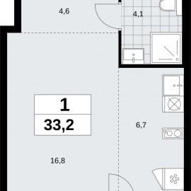 Просторная 1-комн. квартира-студия в ЖК "Прокшино" на 6 этаже. Квартира без отделки, новый владелец может сделать ремонт по индивидуальному дизайн-проекту. Общая площадь: 33.2 кв.м., площадь гостиной 23.5 кв.м., из которых 6.7 кв.м. выделено под кухонную зону. Все окна выходят на одну...