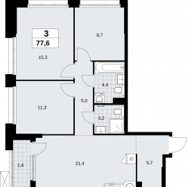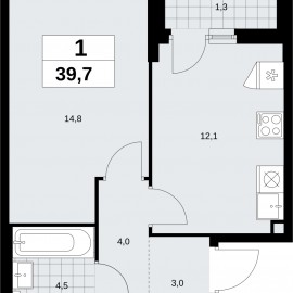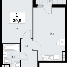 1-комн. квартира от застройщика в ЖК "Прокшино" на 12 этаже. Квартира без отделки, после получения ключей можно делать ремонт. Общая площадь: 39.9 кв.м., жилая: 13.8 кв.м., площадь просторной кухни-столовой: 16.6 кв.м. Все окна выходят на одну сторону. В квартире одна лоджия, один...