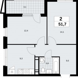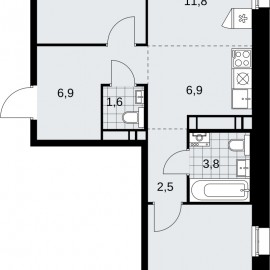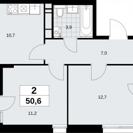 2-комн. квартира от застройщика в ЖК "Прокшино" на 12 этаже. Квартира без отделки, полностью готова к чистовой отделке и дальнейшему ремонту. Общая площадь: 50.6 кв.м., жилая: 23.9 кв.м., площадь просторной кухни-столовой: 10.7 кв.м. Квартира угловая, идеально подойдет любителям тишины...