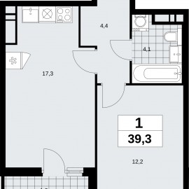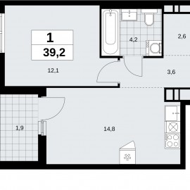 Продается 1-комн. квартира в ЖК "Прокшино" на 15 этаже. Квартира без отделки, после оформления собственности можно делать ремонт. Общая площадь: 39.2 кв.м., жилая: 12.1 кв.м., площадь просторной кухни-столовой: 14.8 кв.м. Все окна выходят на одну сторону. В квартире одна лоджия, один...