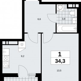 Продается однокомнатная квартира с отделкой в ЖК "Прокшино" на 10 этаже. Общая площадь: 34.3 кв.м., жилая: 13.5 кв.м., площадь просторной кухни-столовой: 9.1 кв.м. Все окна выходят на одну сторону. В квартире одна лоджия, один совмещенный санузел. Высота потолков 2.95 м. Дом монолитный,...