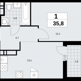 Однокомнатная квартира в ЖК "Прокшино" на 13 этаже. Квартира без отделки, новый собственник может сделать ремонт по своему проекту. Общая площадь: 35.8 кв.м., жилая: 12.1 кв.м., площадь просторной кухни-столовой: 13.1 кв.м. Все окна выходят на одну сторону. В квартире одна лоджия, один...