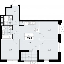 Продается трехкомнатная квартира от застройщика в ЖК "Прокшино" на 16 этаже. Квартира без отделки, новый владелец может сделать ремонт по своему дизайн-проекту. Общая площадь: 65 кв.м., жилая: 32.4 кв.м., площадь просторной кухни-столовой: 16.4 кв.м. Угловая квартира, очень светлая,...
