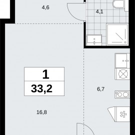 Просторная 1-комн. квартира-студия в ЖК "Прокшино" на 3 этаже. Квартира без отделки, после выдачи ключей можно делать ремонт. Общая площадь: 33.2 кв.м., площадь гостиной 23.5 кв.м., из которых 6.7 кв.м. выделено под кухонную зону. Все окна выходят на одну сторону. В квартире одна лоджия,...