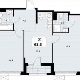 Двухкомнатная квартира от застройщика в ЖК "Прокшино" на 10 этаже. Квартира без отделки, полностью готова к ремонту. Общая площадь: 63.6 кв.м., жилая: 33.3 кв.м., площадь просторной кухни-столовой: 15.5 кв.м. Комнаты изолированные, все окна выходят на одну сторону. В квартире одна...