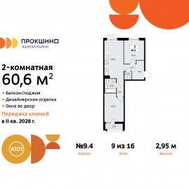 Просторная двухкомнатная квартира с отделкой в ЖК "Прокшино" на 9 этаже. Общая площадь: 60.6 кв.м., жилая: 24.6 кв.м., площадь просторной кухни-столовой: 18.7 кв.м. Квартира - распашонка, без проходных комнат, окна выходят на paзные стороны дома. В квартире один балкон, один совмещенный...