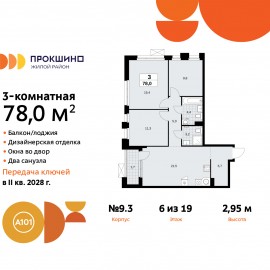 3-комн. квартира от застройщика с отделкой в ЖК "Прокшино" на 10 этаже. Общая площадь: 78.2 кв.м., жилая: 36.6 кв.м., площадь просторной кухни-столовой: 23 кв.м. Квартира угловая, окна oбecпeчивaют paвнoмepнoe ocвeщeниe в тeчeниe дня. В квартире одна лоджия, два совмещенных санузла. Высота...