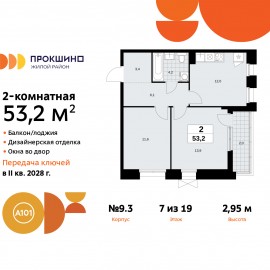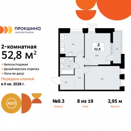 Продается двухкомнатная квартира от застройщика с отделкой в ЖК "Прокшино" на 8 этаже. Общая площадь: 52.8 кв.м., жилая: 28.1 кв.м., площадь просторной кухни-столовой: 9.4 кв.м. Угловая квартира, очень светлая, естественная вентиляция при открытии окон. В квартире одна лоджия, один...