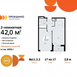 2-комн. квартира с европланировкой от застройщика в ЖК "Прокшино" на 17 этаже. Квартира без отделки, после получения ключей можно делать ремонт. Общая площадь: 42 кв.м., жилая: 24.7 кв.м., общая площадь гостиной-столовой с кухонной зоной: 17 кв.м. Европейская планировка, за счет...