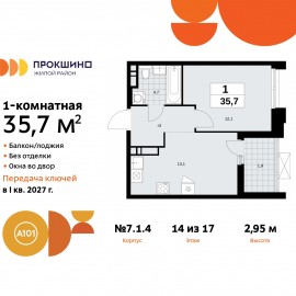 1-комн. квартира от застройщика в ЖК "Прокшино" на 14 этаже. Квартира без отделки, новый владелец может сделать ремонт по индивидуальному дизайн-проекту. Общая площадь: 35.7 кв.м., жилая: 12.1 кв.м., площадь просторной кухни-столовой: 13.1 кв.м. Все окна выходят на одну сторону. В...