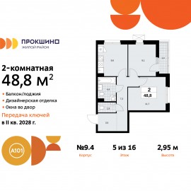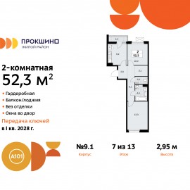 Вашему вниманию предлагается 2-к. квартира в жилом квартале «Прокшино». Сдача дома 1 квартал 2025. От действующей станция ""Прокшино"" Сокольнической линии метро его отделяет всего 500 м. На территории комплекса - собственный образовательный кластер с детским садом на 350 мест...