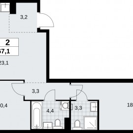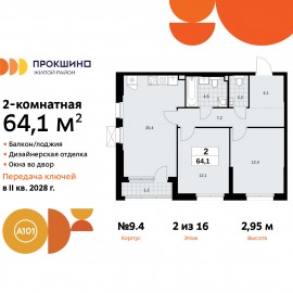 Продается двухкомнатная квартира от застройщика с отделкой в ЖК "Прокшино" на 2 этаже. Общая площадь: 64.1 кв.м., жилая: 24.5 кв.м., площадь просторной кухни-столовой: 20.4 кв.м. Угловая квартира, окна oбecпeчивaют paвнoмepнoe ocвeщeниe в тeчeниe дня. В квартире одна лоджия, один совмещенный и...