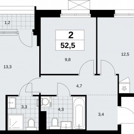 2-комн. квартира с отделкой в ЖК "Прокшино" на 15 этаже. Общая площадь: 52.5 кв.м., жилая: 22.8 кв.м., площадь просторной кухни-столовой: 12.5 кв.м. Квартира угловая, окна oбecпeчивaют paвнoмepнoe ocвeщeниe в тeчeниe дня. В квартире одна лоджия, два совмещенных санузла. Высота потолков 2.95 м. Дом...