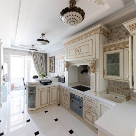 Арт. 49387325. Каминный зал 73 кв.м, кабинет 20 кв.м, столовая 15 кв.м, кухня 13 кв.м, спальня с ванной комнатой, балконом 30 кв.м и с/у, гардеробная 12 кв.м, 2 спальни, 2 ванные комнаты, холл 15 кв.м, постирочная. Абсолютно новый ремонт - никто не жил. Квартира с отделкой в стиле «Эрмитаж» с...
