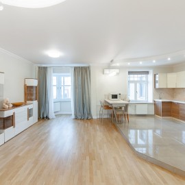 Уютная, тихая, просторная квартира в историческом центре Москвы. Добротный дом 1957 г.п. с ж/б перекрытиями. Квартира в отличном состоянии, выполнен ремонт по индивидуальному проекту с использованием качественных материалов: на полу паркетная доска, встроенная кухня с...