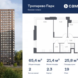 Строим кварталы для жизни с заботой о будущем. Предлагаются 2-комнатные апартаменты бизнес-класса 65, 37 кв.м в корпусе 2.3 на 19 этаже, в МФК «Тропарево Парк» Апартаменты с чистовой отделкой. Доступность дополнительных опций уточняйте у застройщика. Прописка не предусмотрена...
