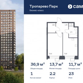 Строим кварталы для жизни с заботой о будущем. Предлагаются 1-комнатные апартаменты бизнес-класса 36, 86 кв.м в корпусе 2.2 на 23 этаже, в МФК «Тропарево Парк» Апартаменты с чистовой отделкой. Доступность дополнительных опций уточняйте у застройщика. Прописка не предусмотрена...
