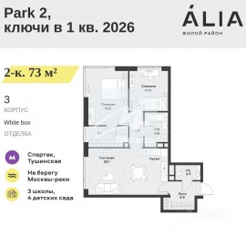 Лот № 74925 Предлагается прекрасная светлая квартира для комфортного проживания в монолитного дома в жилом комплексе Город на Реке Тушино-2018 , расположенном в окружении парков, в пешей доступности от станции метро Спартак . Высота потолка 3, 0 м. Окна на три стороны все с...