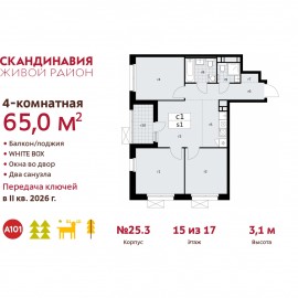 Продается 4-комн. квартира с европланировкой в ЖК "Скандинавия" на 15 этаже. Квартира без отделки, после оформления собственности можно делать ремонт. Общая площадь: 66.1 кв.м., жилая: 43.3 кв.м., суммарная площадь гостиной-столовой с кухонной зоной: 16.7 кв.м. Европланировка, за счет...