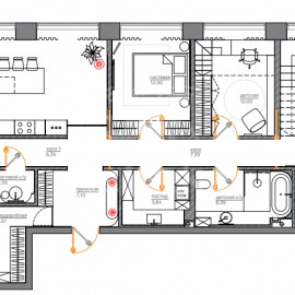 №182026 Двухуровневая квартира площадью 260 кв.м расположена на последних двух этажах клубного дома на Плющихе. Планировка: 1 уровень: просторная кухня со столовой зоной, спальня, рабочий кабинет с двусторонним камином, который можно оборудовать...