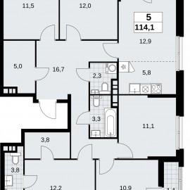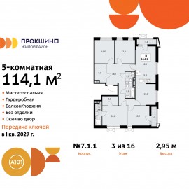 Продается 5-комн. квартира от застройщика в ЖК "Прокшино" на 3 этаже. Квартира без отделки, новый владелец может сделать ремонт по своему дизайн-проекту. Общая площадь: 114.1 кв.м., жилая: 57.7 кв.м., площадь просторной кухни-столовой: 18.7 кв.м. Квартира без проходных комнат, окна...