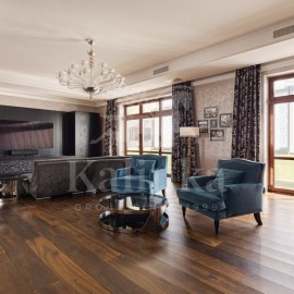 №178837 Предлагается семейная резиденция от ведущего дизайнера площадью 280, 3 кв.м.: светлая гостиная с эркером и видом на Кремль, просторная столовая, кухня с кладовым помещением, две спальни с собственными ванными и гардеробными комнатами и...