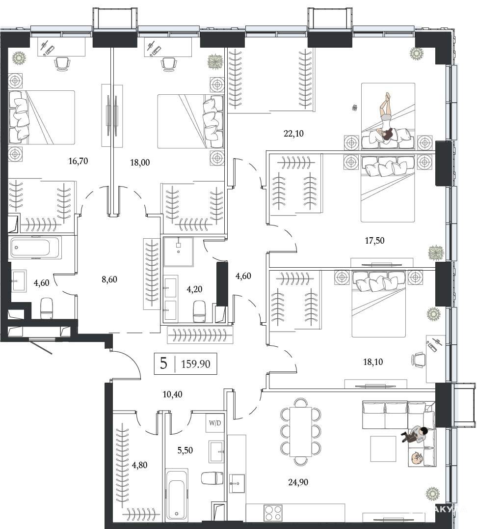 Продается 5-комн. квартира, площадью 159.9 кв.м. Возможен вариант покупки с использованием ипотечных средств.
