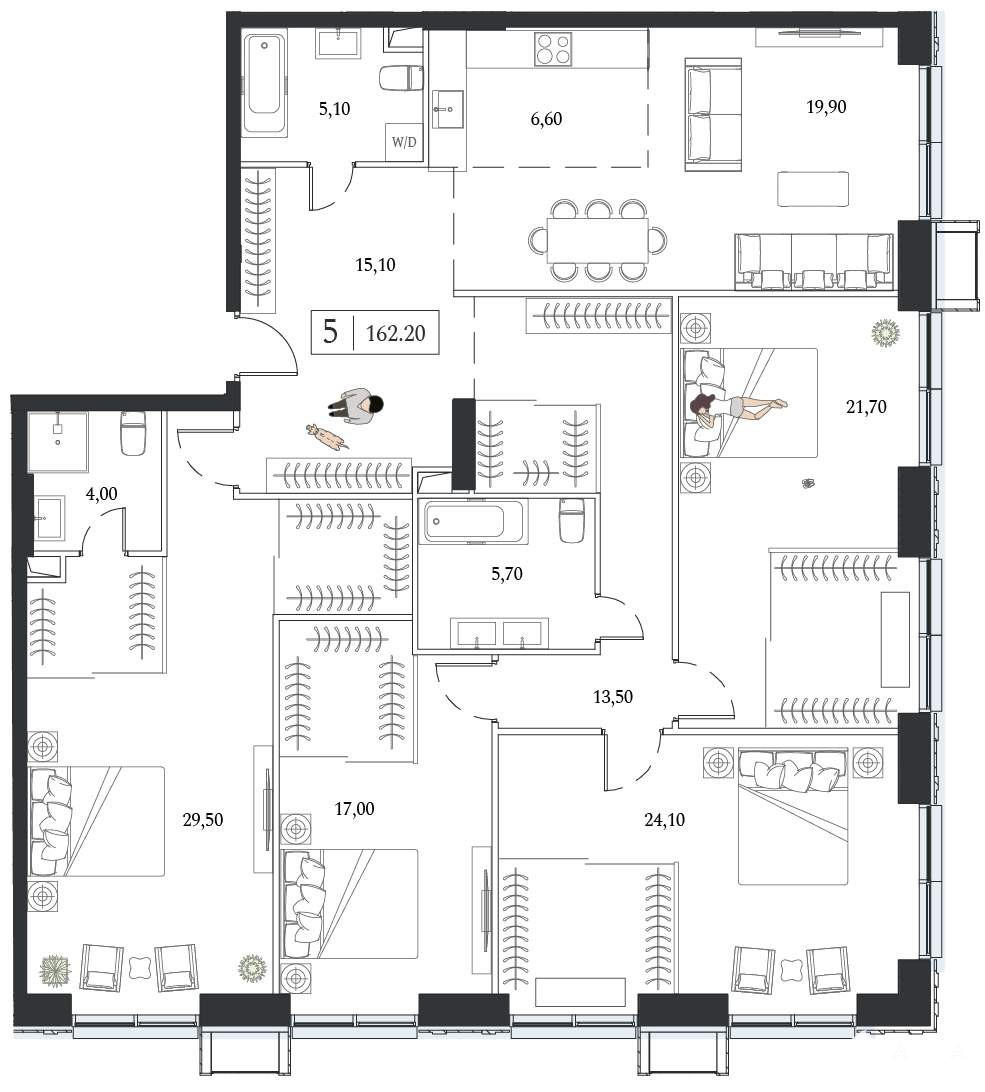 Продается 5-комн. квартира, площадью 162.2 кв.м. Возможен вариант покупки с использованием ипотечных средств.