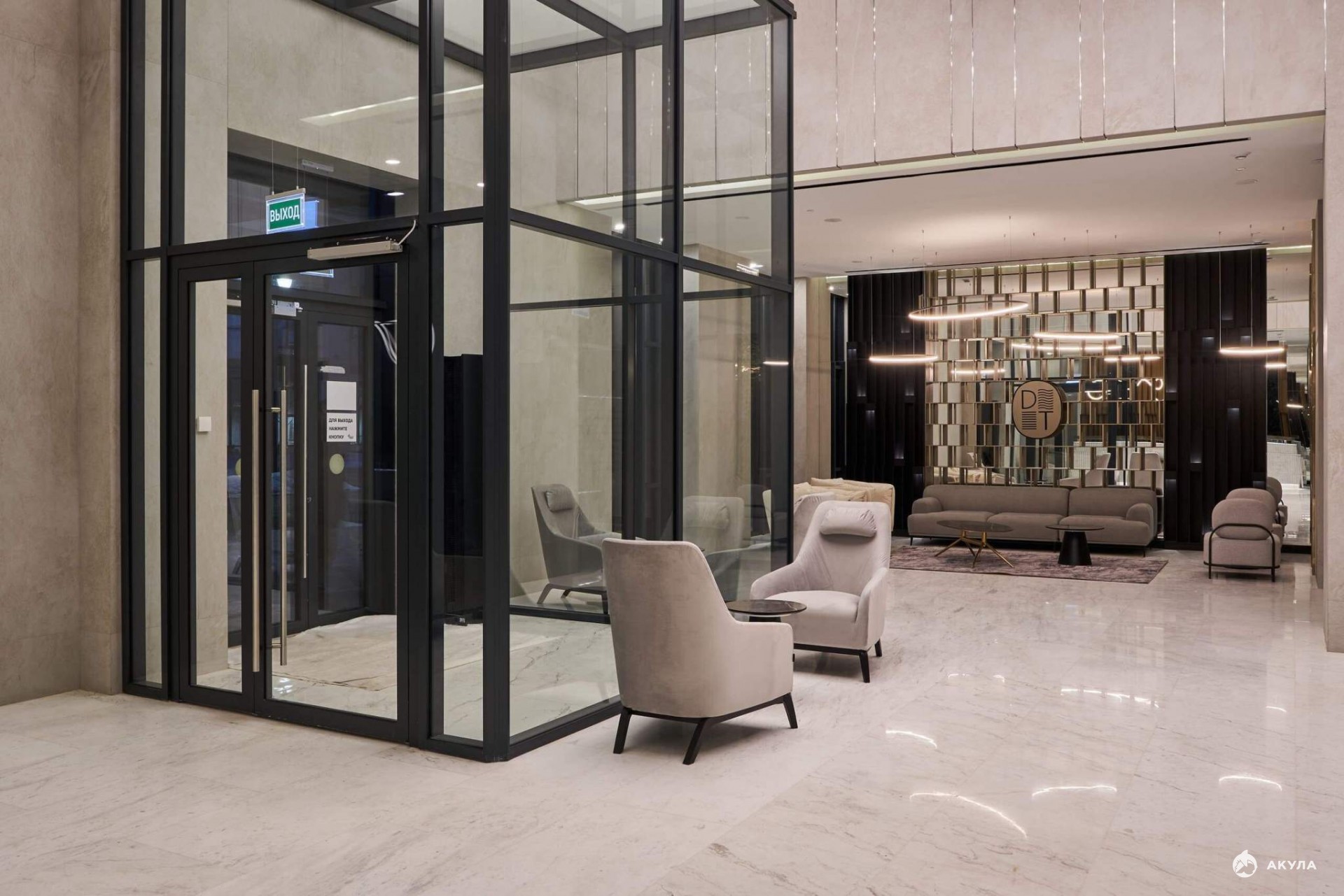 Квартира располагается на 20 этаже 24-этажного монолитно-кирпичного дома, высота потолков 3.15 м.