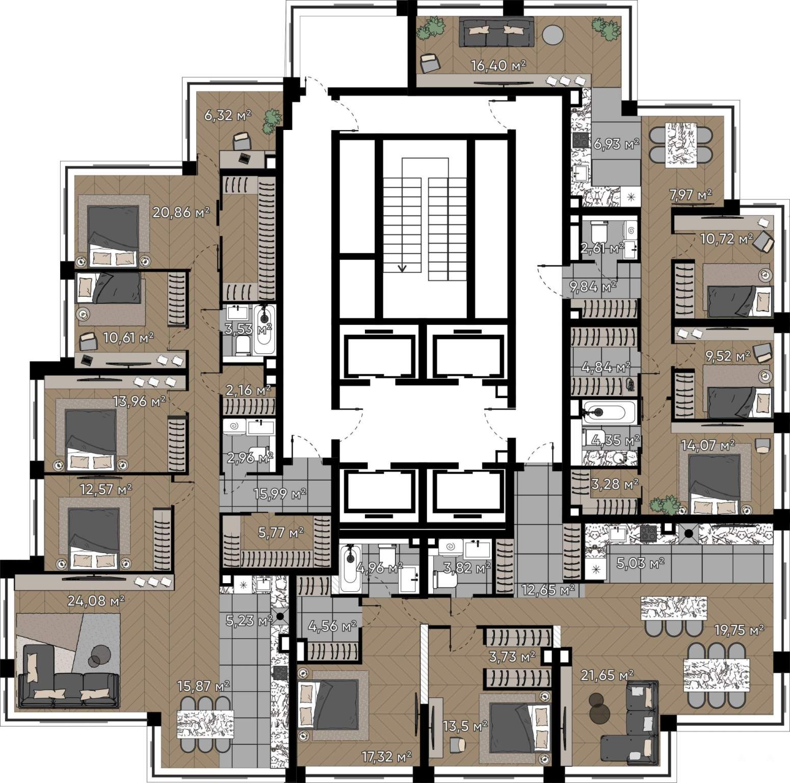 Квартиры с просторными террасами - выход на свежий воздух прямо из дома, гармония природы и городской роскоши.