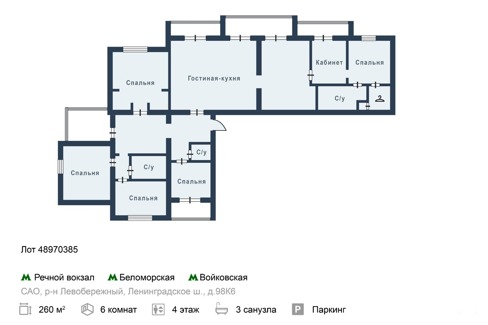 Эксклюзив. Вашему вниманию предлагается 6-ти комнатная квартира на 4-ом этаже в 15-ти этажном кирпичном доме площадью 237, 40, 0 м2 около метро Речной Вокзал ( 7 мин. пешком).